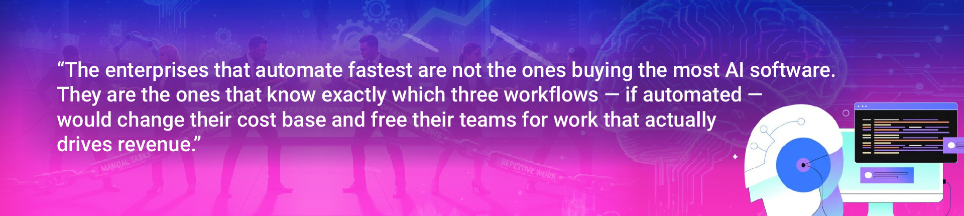 Talent constraints: Skilled talent is expensive and scarce. Automating high-volume, low- judgment tasks is the fastest way to expand operational capacity without proportional headcount growth.